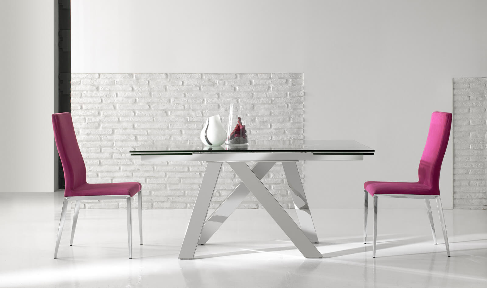 Αν θέλουμε το τραπέζι μας να φανεί μικρότερο επιλέγουμε το γυαλί – έστω και χρωματιστό – σαν υλικό για την επιφάνεια, το οποίο έχει την ιδιότητα να αντανακλά μέσα του το περιβάλλον. Λειτουργεί, δηλαδή, λίγο σαν καθρέφτης.