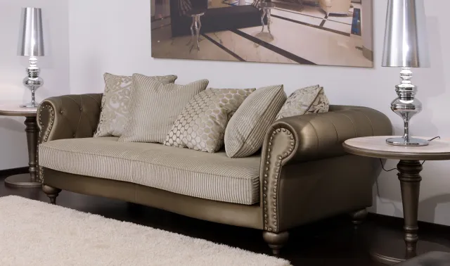 Αν επιλέξουμε καναπέ σε κλασική ή πολυτελή γραμμή επιλέγουμε υφάσματα τα οποία να έχουν μια ελαφριά γυαλάδα (βισκόζη, μετάξι κτλ). Κλασικές επιλογές χρώματων θεωρούνται τα μπεζ, μελί, λαδί, μπορντώ, χρυσό και οι συνδυασμοί αυτών.