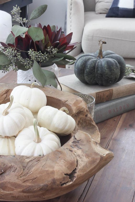 4. Το coffee table μας είναι το επίκεντρο στα έπιπλα σαλονιού. Ακόμα κι αν συνήθως φιλοξενεί τηλεκοντρόλ, βιβλία και διάφορα άλλα αντικείμενα, αυτό το φθινόπωρο μπορείτε να κάνετε τη διαφορά και να το μεταμορφώσετε. Λουλούδια, κεριά, συνθέσεις με στοιχεία της εποχής, ξερά φύλλα, μικρές κολοκύθες ή φαναράκια θα δημιουργήσουν την απόλυτη φθινοπωρινή ατμόσφαιρα μέσα στο σαλόνι σας.