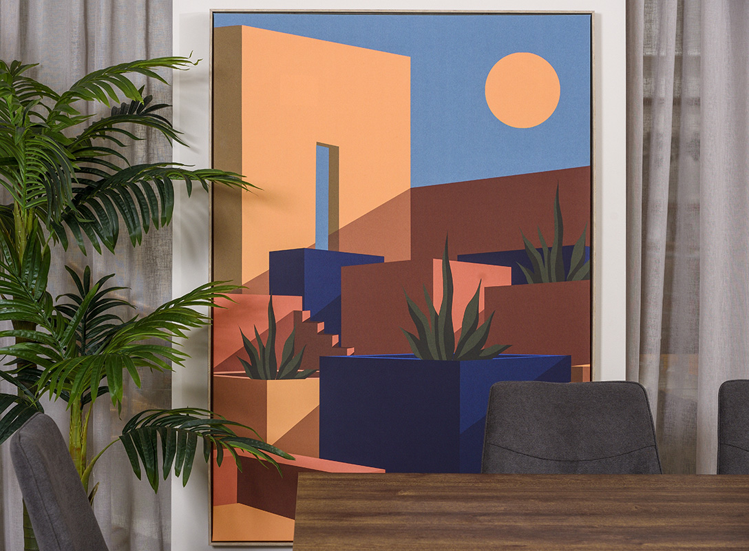 Προσθέστε χρώμα και χαρακτήρα στο χώρο σας με τον πίνακας βέλγικης προέλευσης στα χρώματα του μπλε και της terracotta.