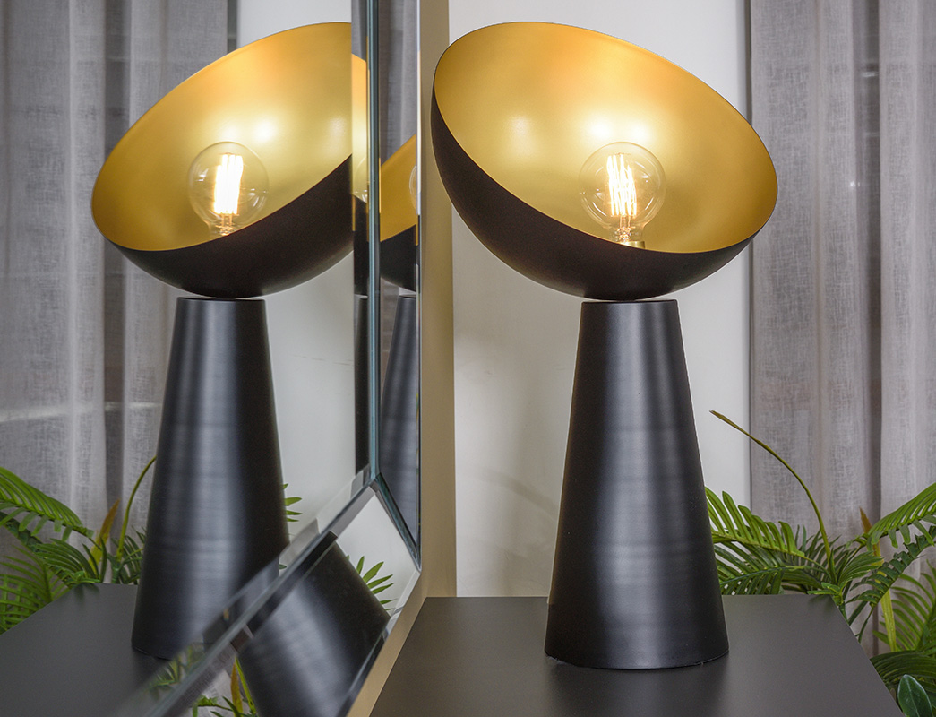 Μαύρο μεταλλικό φωτιστικό με μπρονζέ κάτοπτρο.