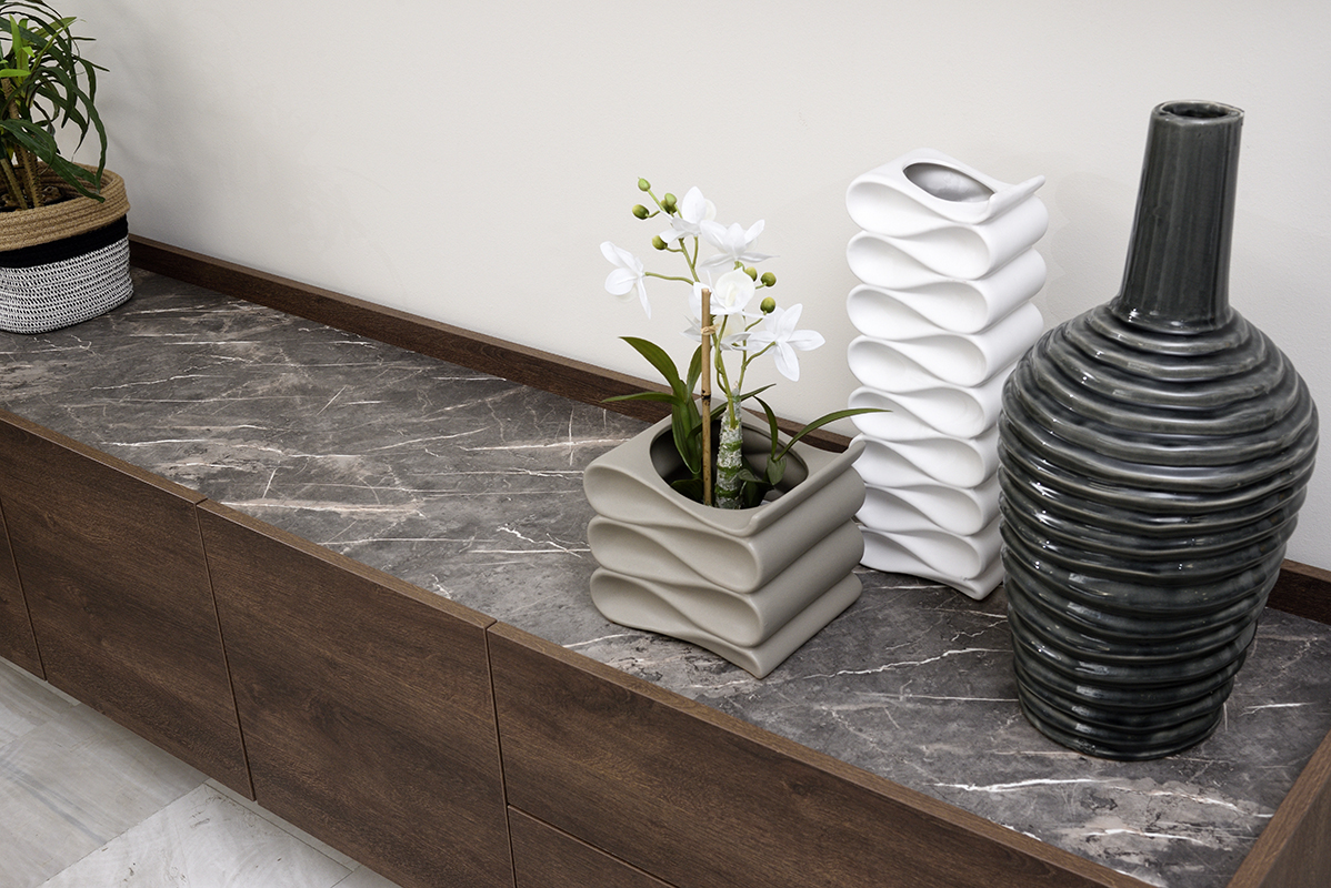 Έπιπλο τηλεόρασης κατασκευασμένο από 3d μελαμίνη και επιφάνεια σε όψη μαρμάρου.
