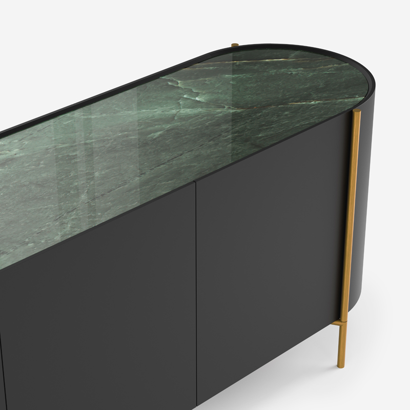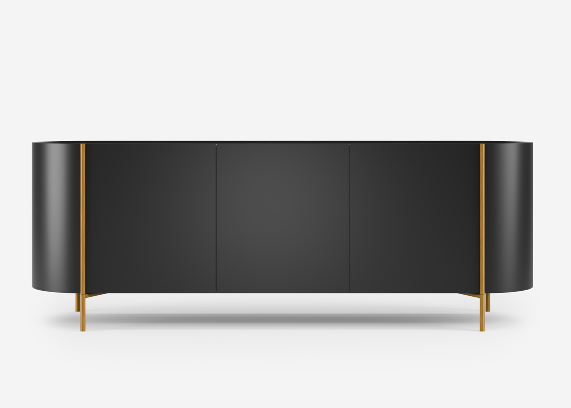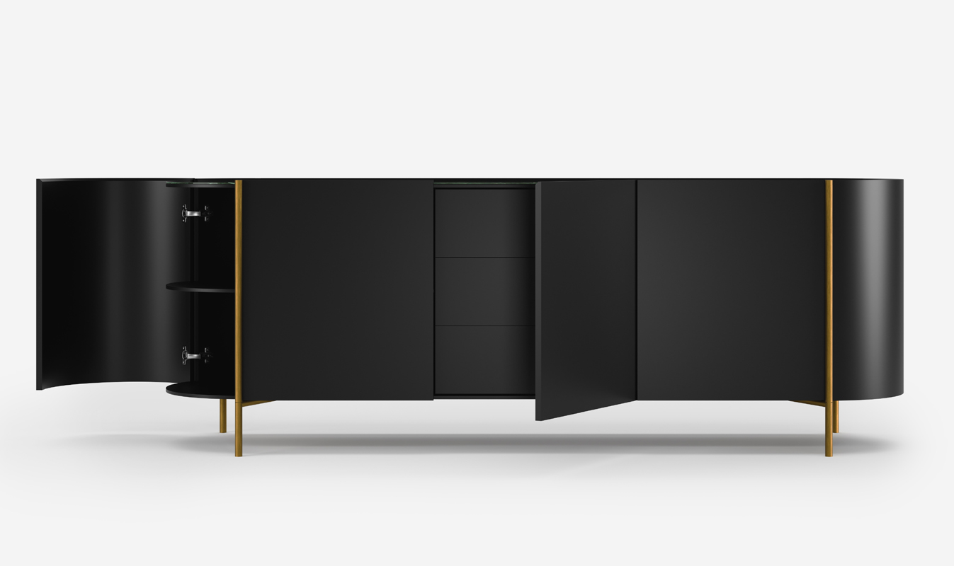 Μπουφές τραπεζαρίας κατασκευασμένος από ηψίσυχνη δρυ, βελούδινες λακαριστές πόρτες, χρυσές μεταλλικές λεπτομέρειες και γυαλιστερή κεραμική επιφάνεια που προσδίδουν πολυτέλεια. Οι πόρτες και τα συρτάρια λειτουργούν με μηχανισμούς soft-close για αθόρυβη χρήση. Επιλέξτε ανάμεσα σε 30 αποχρώσεις δρυός, 24 λακαριστές υφές, 7 διαφορετικές κεραμικές και 8 μεταλλικές αποχρώσεις, ώστε να συνθέσετε το δικό σας μοναδικό αποτέλεσμα. Συνδυάστε τον με την τραπεζαρία Ridaeu για ολοκληρωμένο αποτέλεσμα.