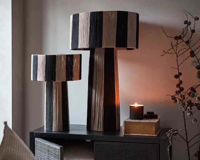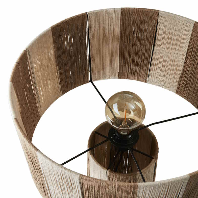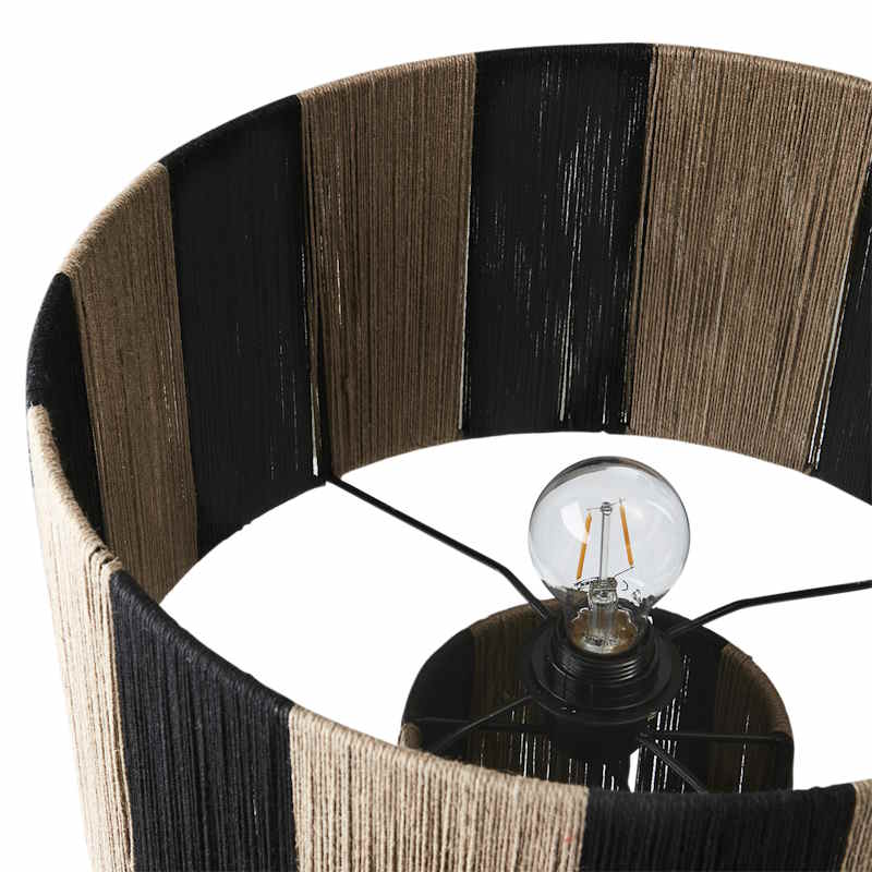 Επιτραπέζιο φωτιστικό σουηδικής προέλευσης κατασκευασμένο από μεταλλικό σκελετό και σχοινιά από γιούτα. Διατίθεται σε 3 ιδιαίτερους συνδυασμούς αποχρώσεων.
