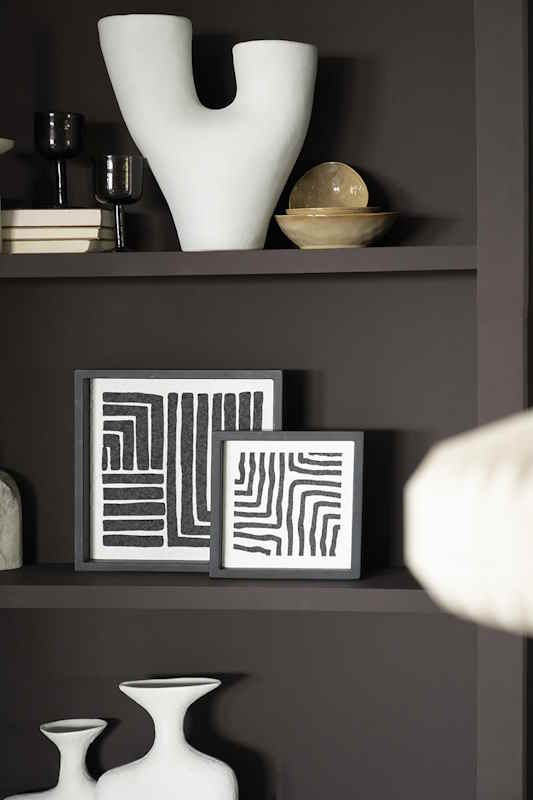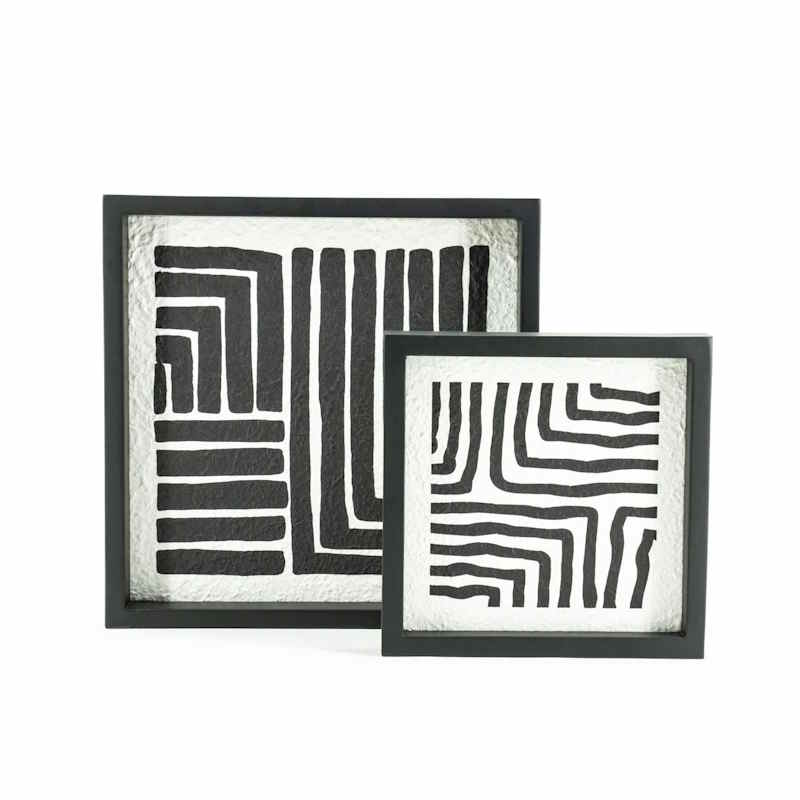 Σετ από 2 πίνακες ολλανδικής προέλευσης με μαύρη ξύλινη κορνίζα και γεωμετρικά ασπρόμαυρα μοτίβα.