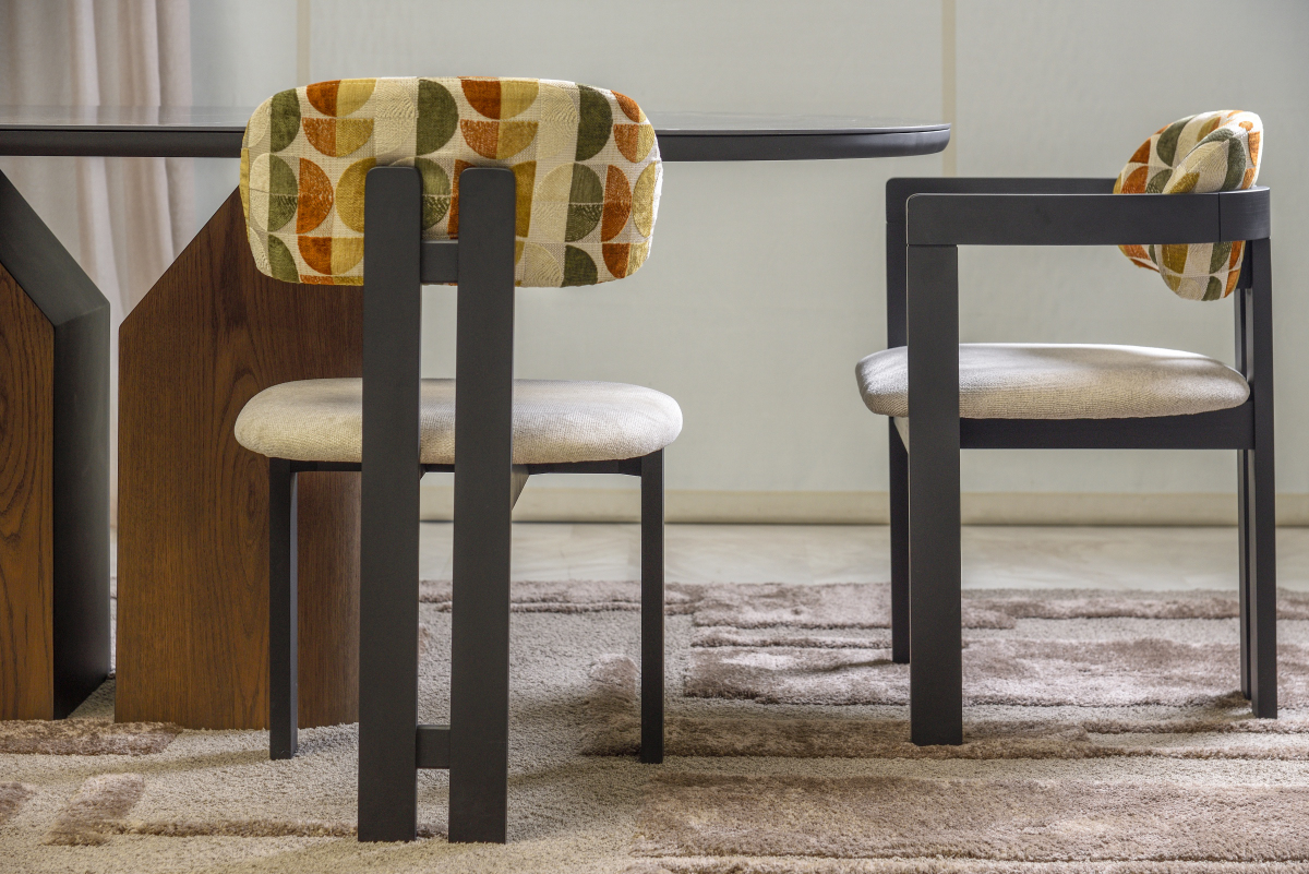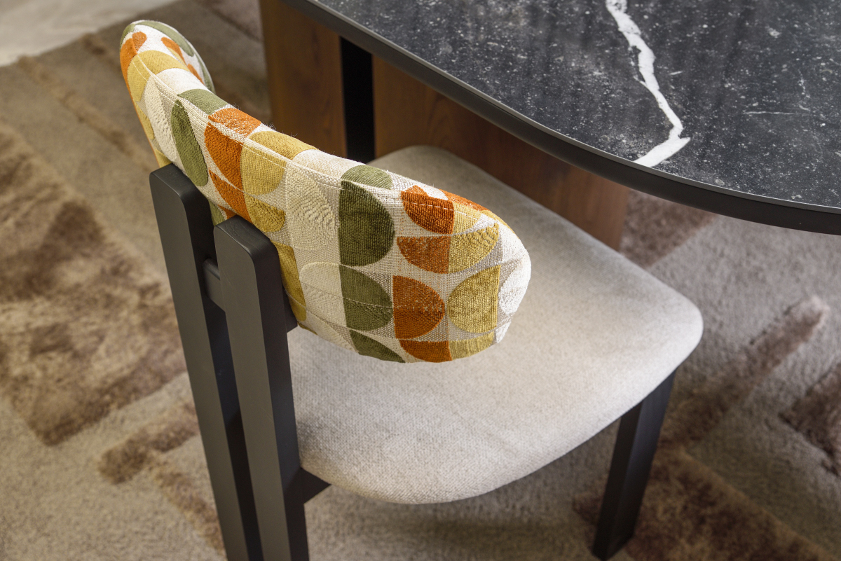 Kαρέκλα τραπεζαρίας που συνδυάζει την αρχιτεκτονική καθαρότητα με τη στιβαρή κατασκευή από ξύλο δρυός. Η χαρακτηριστική καμπυλωτή πλάτη της προσφέρει εργονομική υποστήριξη, δημιουργώντας μια αίσθηση άνεσης και ιδιωτικότητας. Με δυνατότητα επιλογής σε όλες τις αποχρώσεις ξύλου και αμέτρητες επενδύσεις υφασμάτων, επιδέχεται πλήρη εξατομίκευση. Αποτελεί μια εκλεπτυσμένη πρόταση που ισορροπεί ιδανικά ανάμεσα στη διαχρονική ποιότητα του φυσικού υλικού και τις απαιτήσεις του σύγχρονου design.