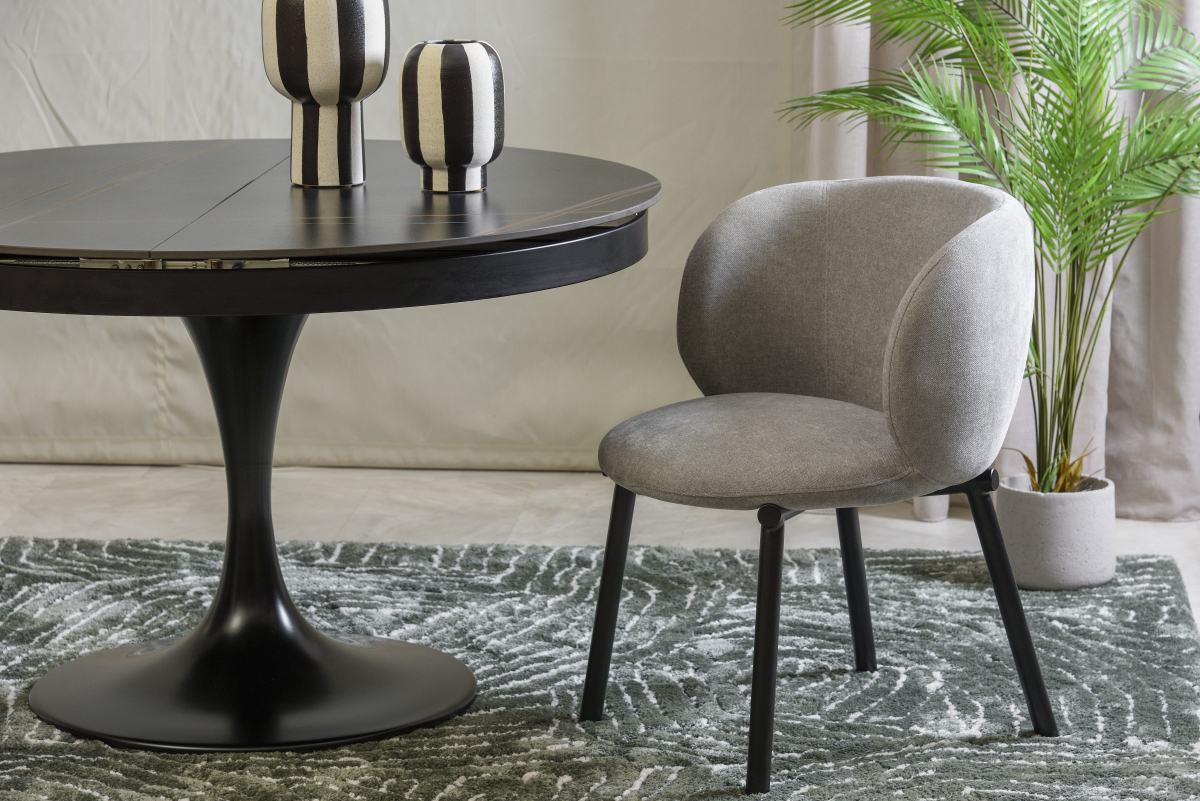 Ιταλική καρέκλα τραπεζαρίας εμπνευσμένη από τη μίνιμαλ ιαπωνική αισθητική. Είναι ντυμένη με ύφασμα easy-clean, πιστοποιημένο με ΟΕΚΟ-ΤΕΧ. Επιλέξετε ανάμεσα σε 6 αποχρώσεις υφάσματος σε 4 διαφορετικές αποχρώσεις μετάλλου, ώστε να δημιουργήστε το δικό σας μοναδικό αποτέλεσμα.