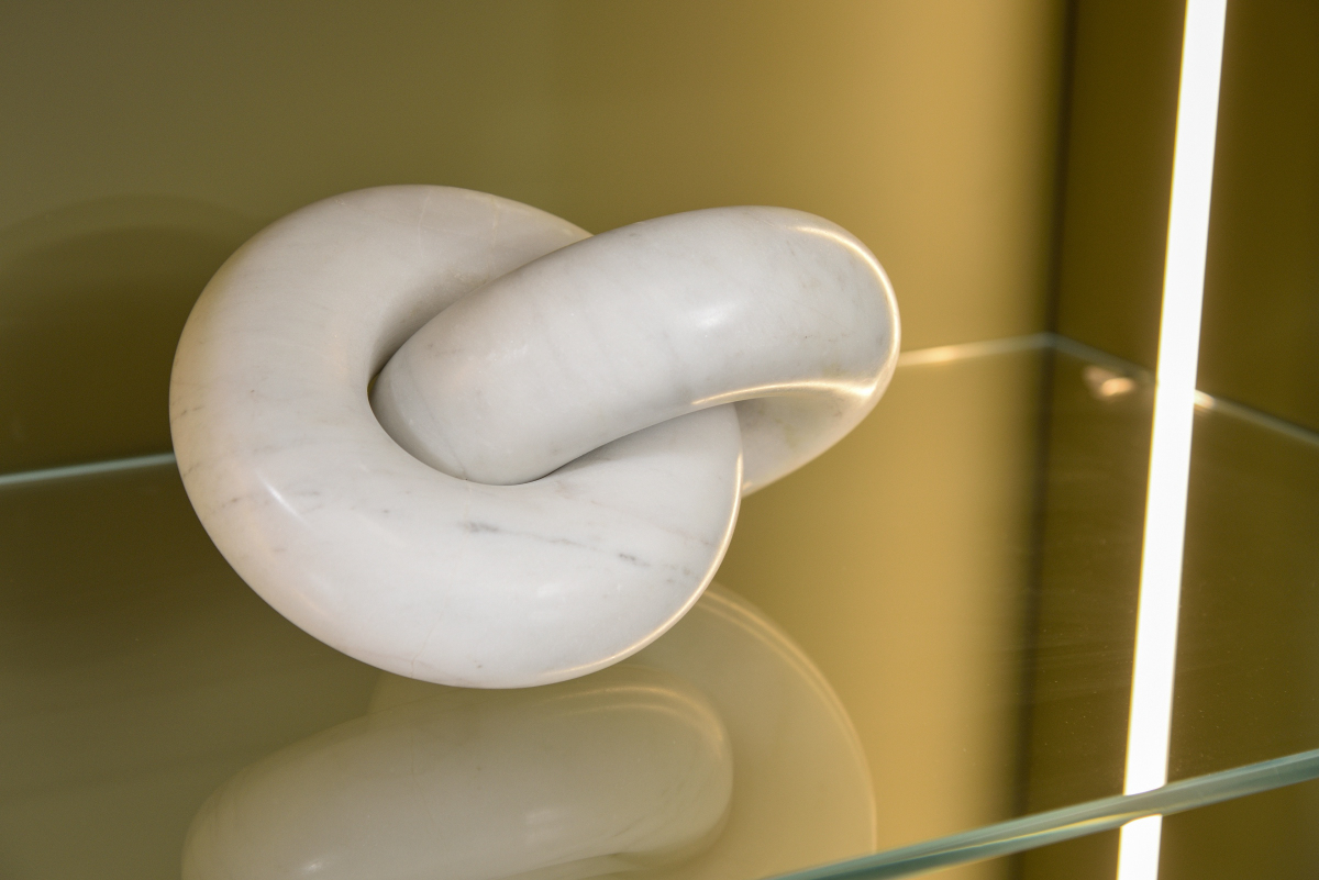 Διακοσμητική αλυσίδα από φυσικό μάρμαρο, που προσδίδουν αρχιτεκτονικό ενδιαφέρον στον χώρο. Η στιβαρή τους κατασκευή και η καθαρότητα του υλικού τις καθιστούν ένα ιδανικό statement κομμάτι για κονσόλες, ράφια ή τραπέζια. Ένα αντικείμενο που ισορροπεί ανάμεσα στη γλυπτική και τη διακόσμηση, αναβαθμίζοντας αμέσως την αισθητική του περιβάλλοντος.