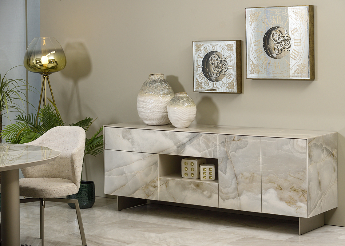 Κατηγορίες: ξύλο, Μπουφέδες, κεραμικό, Έπιπλα Τραπεζαρίας, μεταλλικές λεπτομέρειες, με συρτάρια, ανοιγόμενες πόρτες