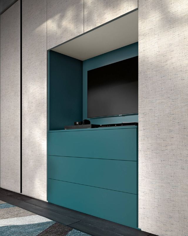 Ντουλάπα ιταλικής προέλευσης. Προσαρμόστε την στα μέτρα του δωματίου σας, επιλέξτε ανάμεσα σε 16 αποχρώσεις μελαμίνης και 12 αποχρώσεις λάκας ώστε να συνθέσετε το δικό σας μοναδικό αποτέλεσμα.