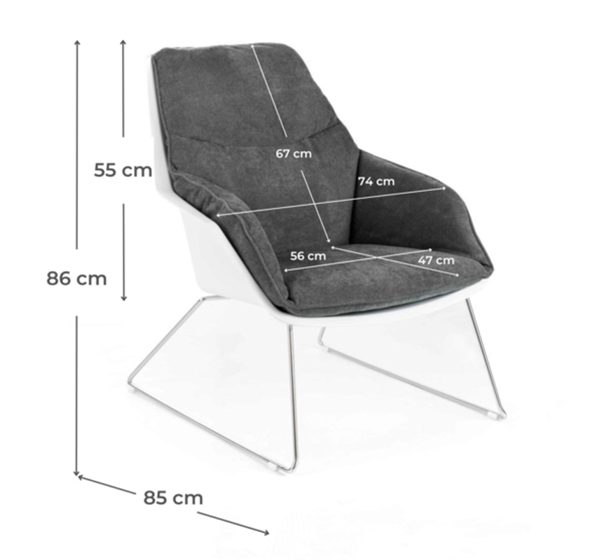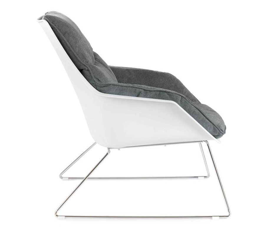 Πολυθρόνα ιταλικής προέλευσης κατασκευασμένη από λευκό πολυπροπυλένιο και μεταλλικά πόδια. Το ύφασμα του μαξιλαριού είναι αφαιρούμενο για μεγαλύτερη ευκολία στο πλύσιμο και την συντήρηση.