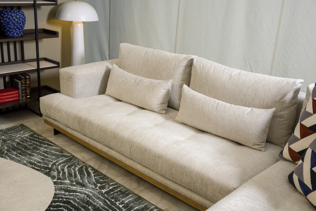 Συνδυάζει καθαρές γραμμές και γενναιόδωρες αναλογίες, δημιουργώντας έναν χώρο χαλάρωσης με σύγχρονο και διαχρονικό χαρακτήρα. Η χαμηλή, στιβαρή του βάση προσδίδει σταθερότητα και στυλ, ενώ τα πλούσια μαξιλάρια καθίσματος και πλάτης προσφέρουν υψηλό επίπεδο άνεσης και φιλόξενη αίσθηση. Ο σχεδιασμός του επιτρέπει την τοποθέτηση τόσο ως γωνιακός καναπές όσο και ως ελεύθερη σύνθεση στον χώρο, αποτελώντας το κεντρικό σημείο του καθιστικού. Επιλέξτε ανάμεσα σε ατελείωτες επιλογές υφασμάτων από τη συλλογή μας αλλά και αμέτρητες αποχρώσεις ξύλου για να συνθέσετε τον δικό σας μοναδικό καναπέ. Παράγεται σε ποικιλία διαστάσεων.