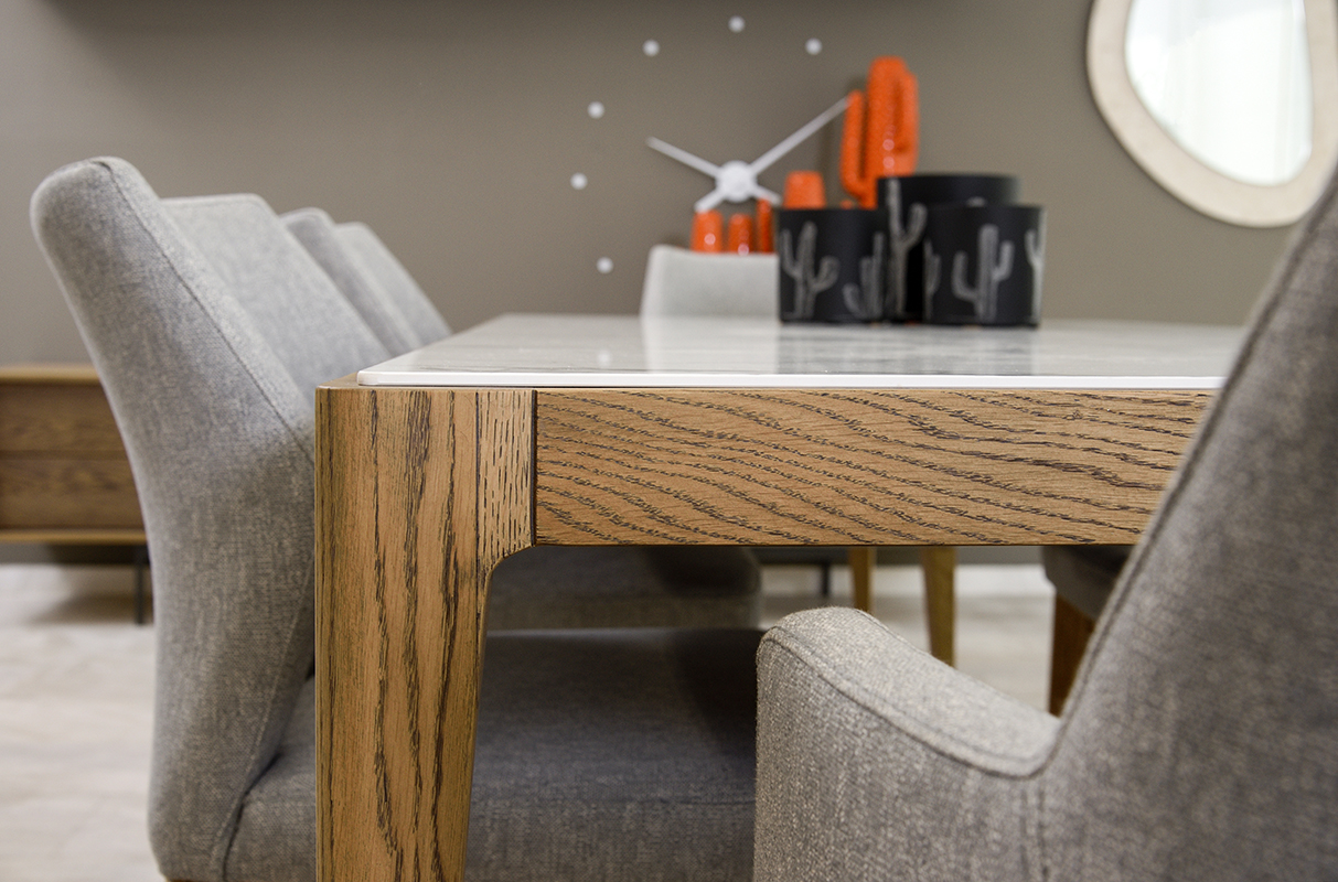 Chic τραπεζαρία από μασίφ ξύλο δρυός και λευκή κεραμική επιφάνεια. Επιλέξτε ανάμεσα σε αμέτρητες αποχρώσεις δρυός και 9 διαφορετικές κεραμικές επιφάνειες ώστε να συνθέσετε το δικό σας μοναδικό αποτέλεσμα. Η επιφάνεια μπορεί να παραμείνει δρύινη για τους λάτρεις του ξύλου. Προσαρμόστε την τραπεζαρία στις διαστάσεις του χώρου σας ή επιλέξτε μια από τις διαθέσιμες διαστάσεις 1.60×0.90, 1.80×1.00, 2.00×1.00, 2.20×1.00. Συνδυάστε τη με τον μπουφέ Berlin για ολοκληρωμένο αισθητικό αποτέλεσμα.