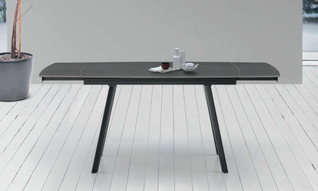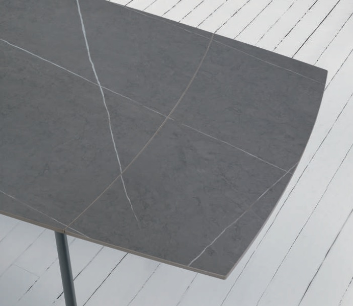 Ιταλικής προέλευσης τραπέζι που συνδυάζει την υψηλή αισθητική με την απόλυτη ανθεκτικότητα. Η κομψή μεταλλική του βάση δημιουργεί μια καθαρή, σύγχρονη σιλουέτα, ενώ η κεραμική επιφάνεια αποπνέει διαχρονική πολυτέλεια και εξαιρετική ποιότητα.