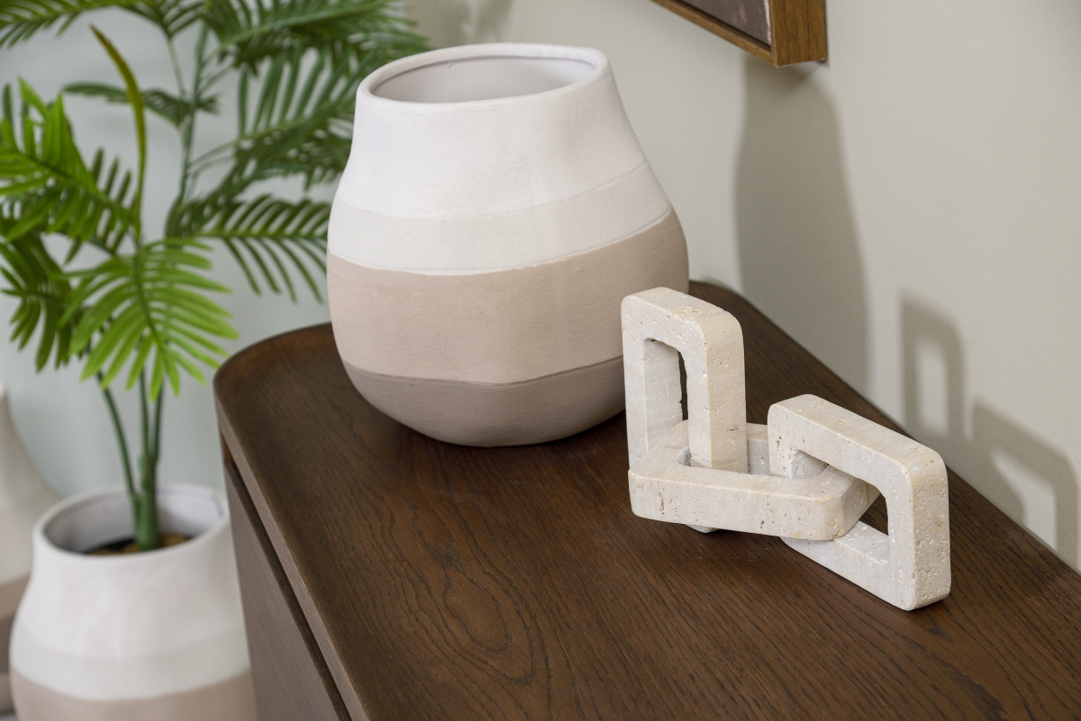 Μια σειρά βέλγικων κεραμικών διακοσμητικών που ενσαρκώνουν τον σύγχρονο μινιμαλισμό μέσα από γήινες αποχρώσεις και οργανικές φόρμες. Με ακανόνιστα σχήματα και ρουστίκ όγκο σε τέσσερα μεγέθη, κάθε κομμάτι είναι μοναδικό και φιλοτεχνημένο στο χέρι. Ιδανικά για να πλαισιώνουν τραπεζαρίες ή σαλόνια, τοποθετούνται με ευελιξία σε μπουφέδες ή απευθείας στο έδαφος, προσφέροντας ποικίλες διακοσμητικές λύσεις με χαρακτήρα.