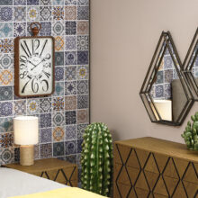 Καθρέφτης σε απομίμηση ψηφιδωτού με ξύλο.